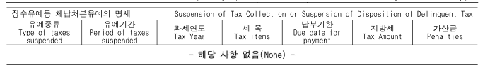 - 해당 사항 없음(None) - 라고 나와야 세금 미납되지 않은거다