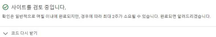 체크박스의 [코드를 사이트에 붙여넣었습니다]를 클릭하고 [완료] 버튼을 누르면 적용이 됩니다.