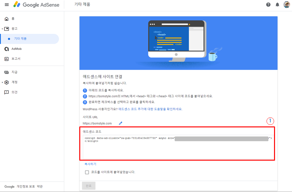 애드센스 코드 복사하기