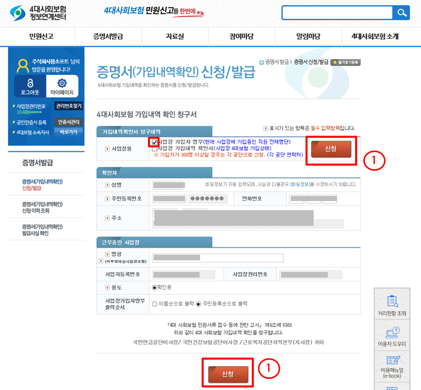 4대보험 가입자명부는 정말 많이 발행하는 문서중 하나 입니다.