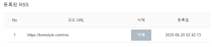 사이트 주소인 https://bomstyle.com/rss 를 입력하였습니다.
