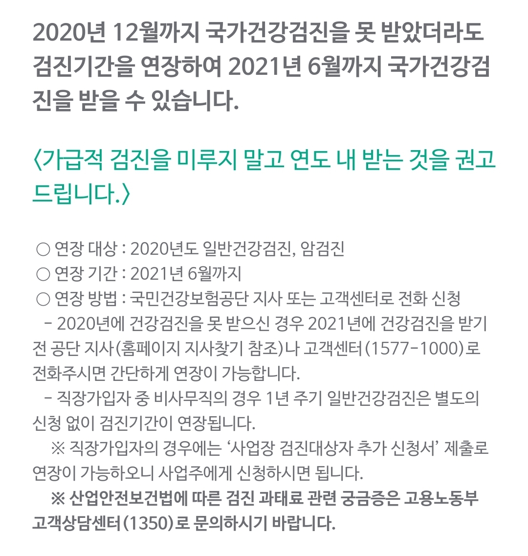 2021년 6월 30일까지 건강검진을 받을수 있도록