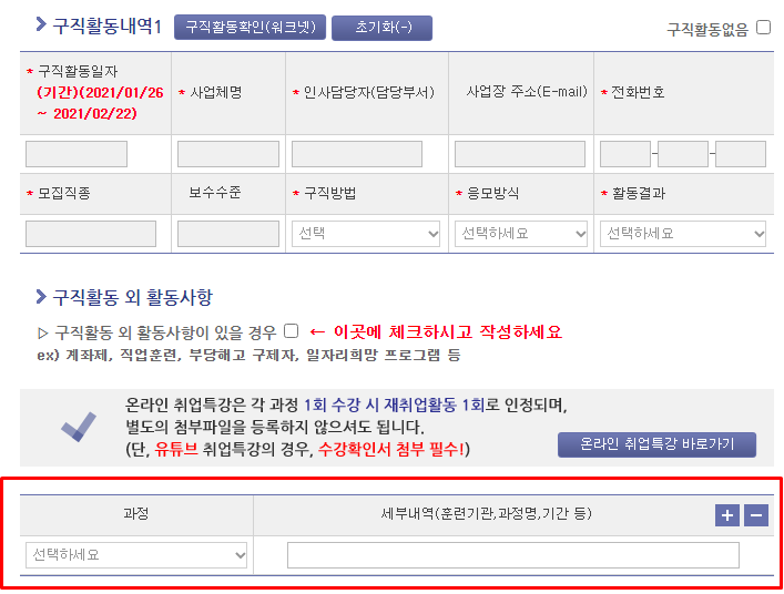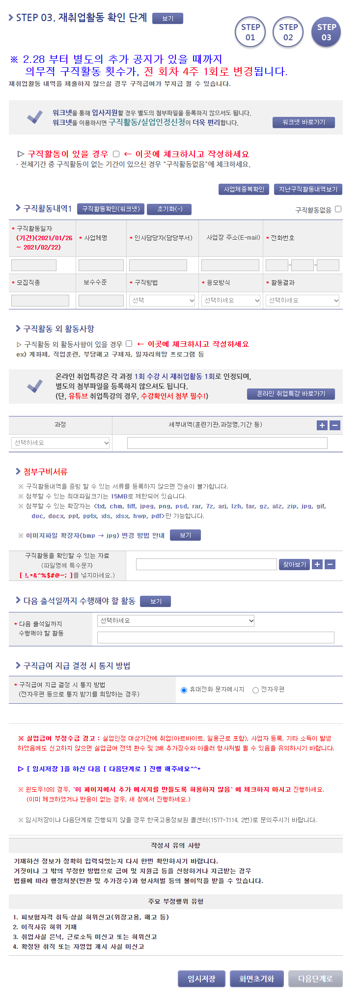 STEP 03. 재취업활동 확인 단계 중간쯤에 보면,