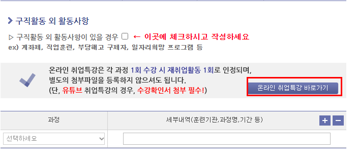 과정에 <구직활동 외 활동사항> 선택,