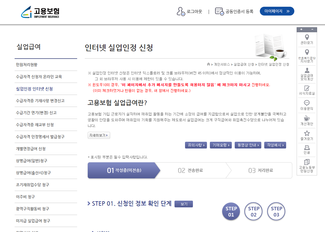 1차 실업인정일 동영상 듣기를 알아보도록 하겠습니다.