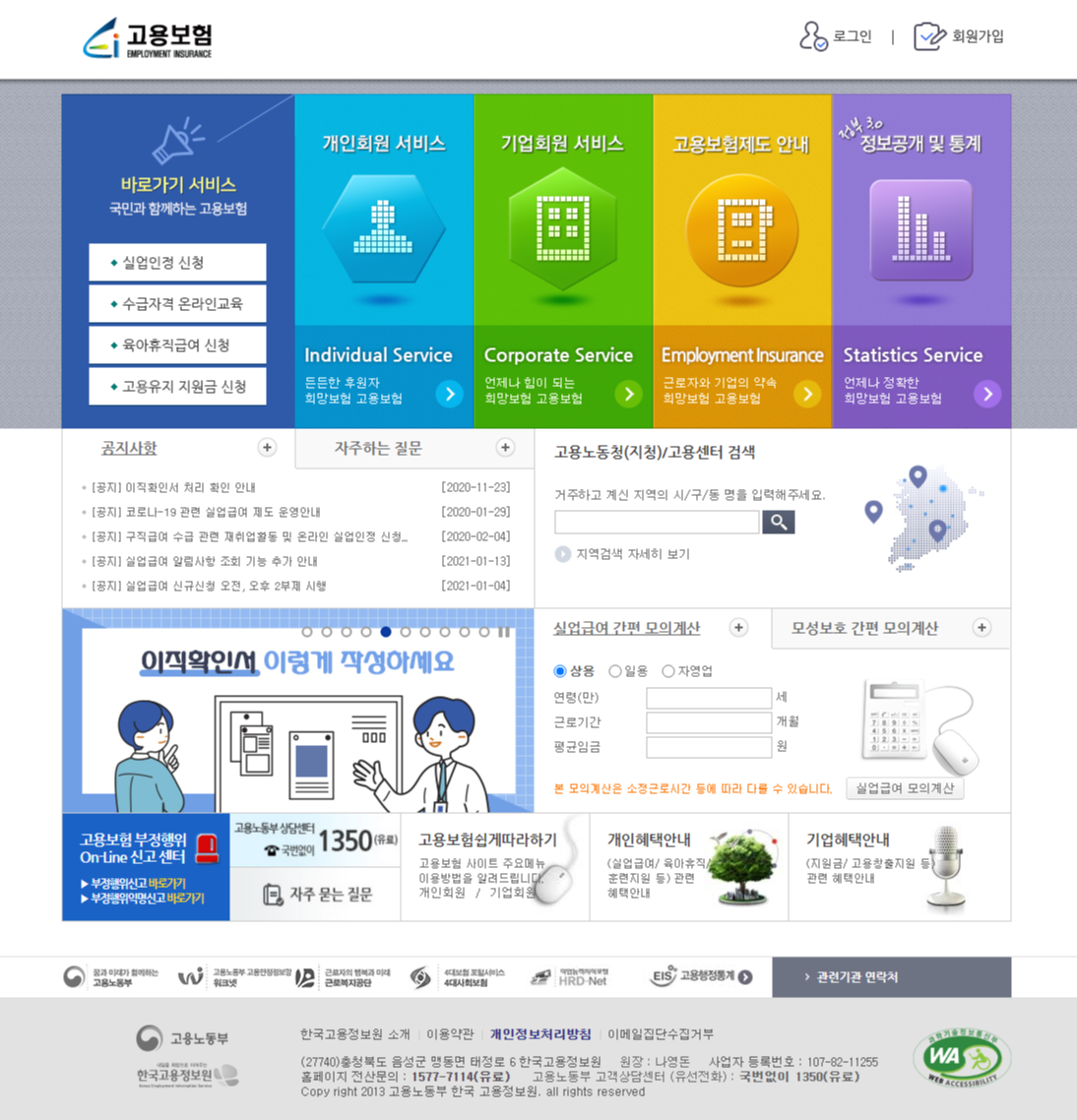 1. 고용보험 홈페이지에 접속을 합니다.