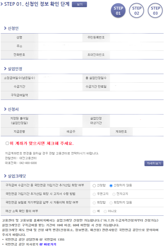 4. <STEP 01. 신청인 정보 확인 단계>가 나오는데,