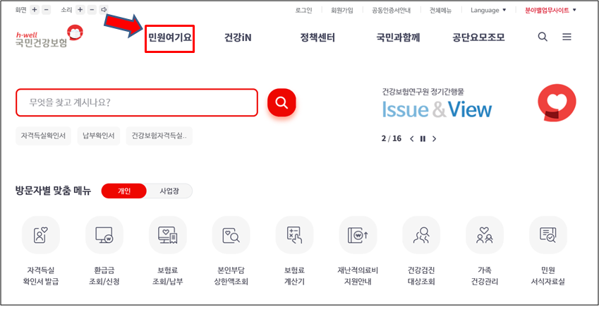 국민건강보험 홈페이지 접속후