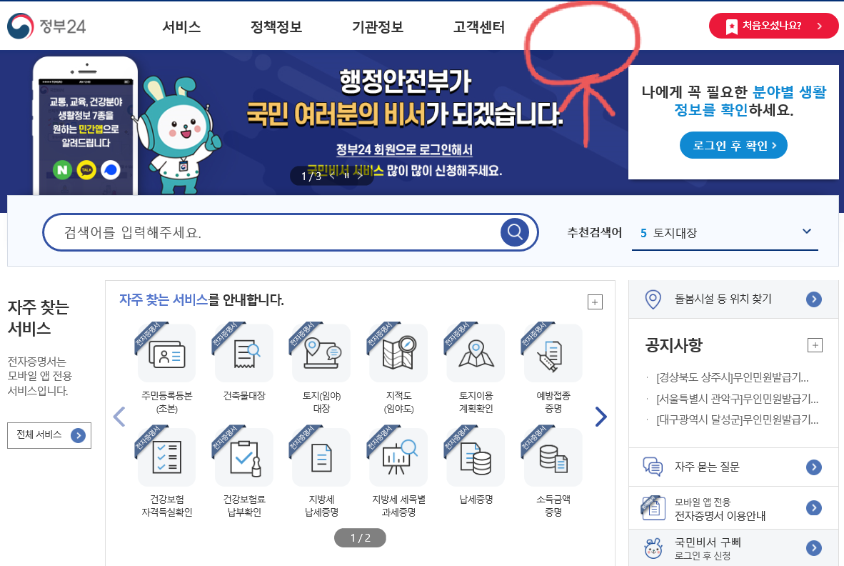 둘째, 회원가입후 로그인을 하셔야 "보조금24"가 보입니다.