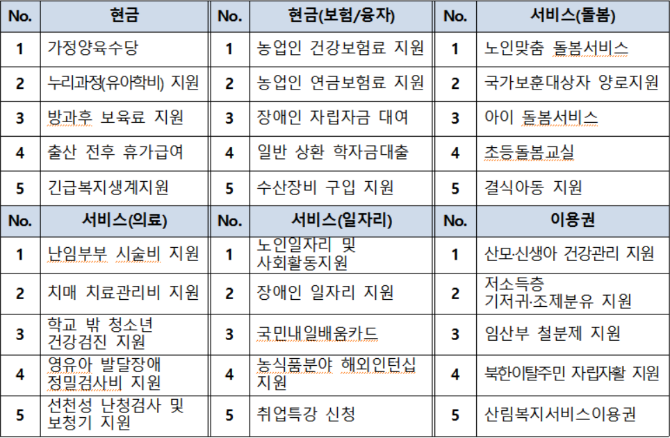 3. 받을 수 있는 정부혜택 목록을 수령합니다.