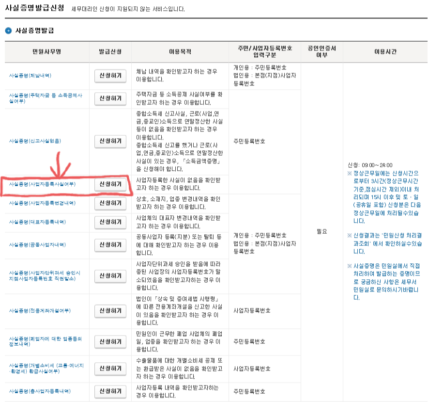 오늘은 <사업자 사실증명서> 발급방법에