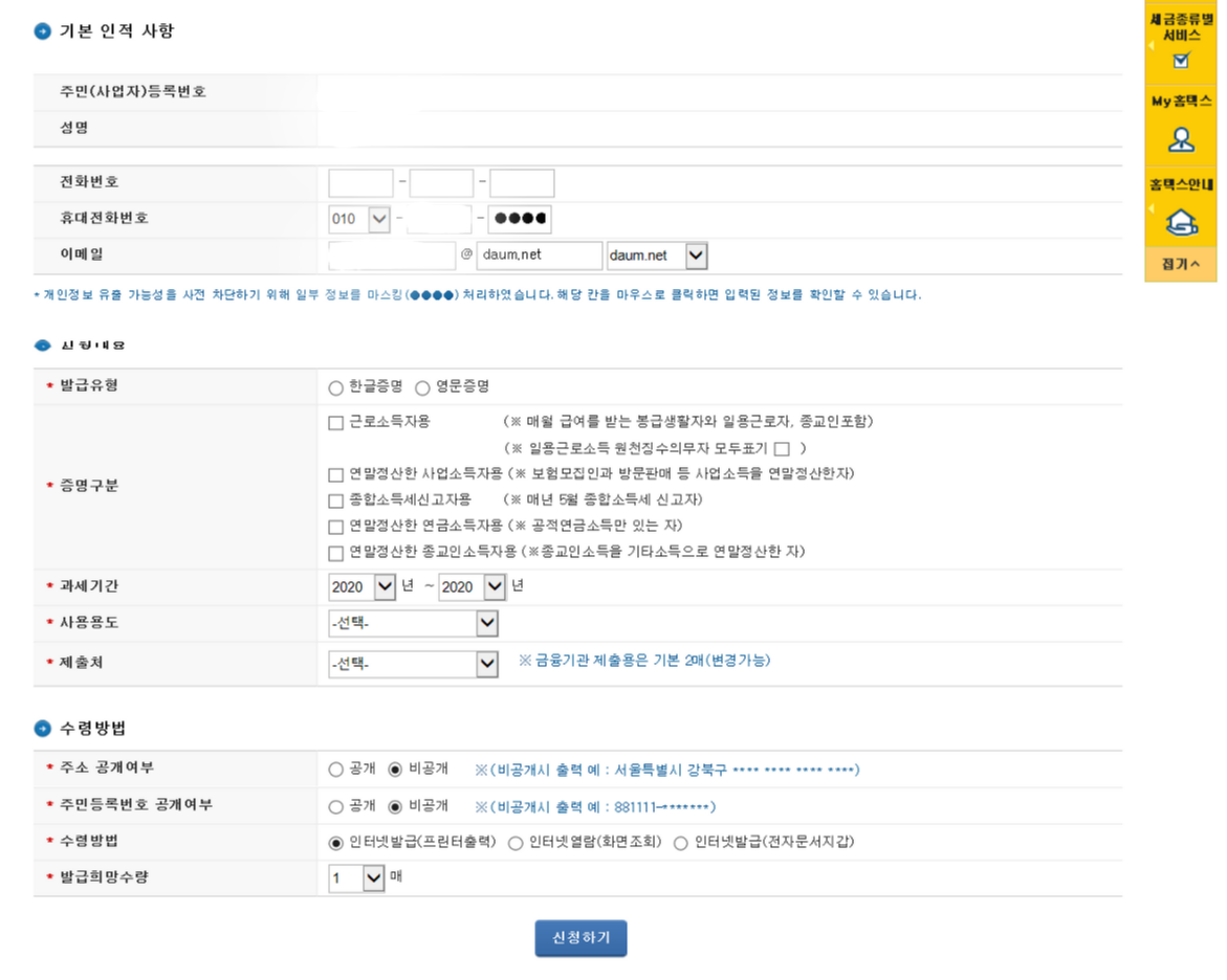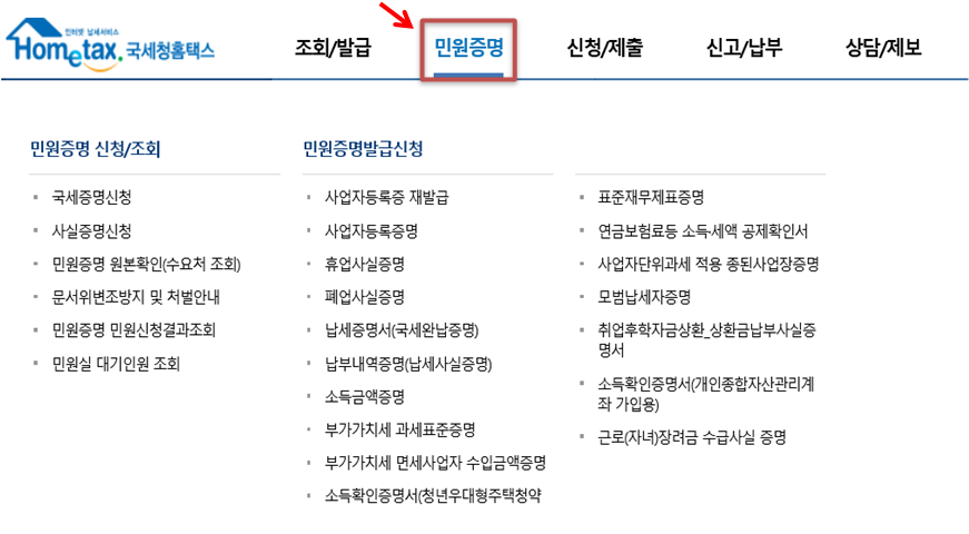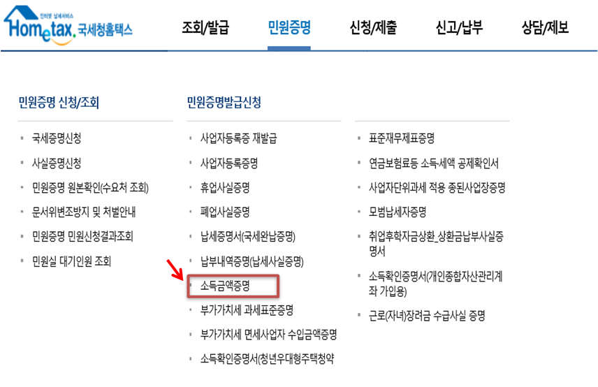 국세청 홈택스에서 "소득금액증명원" 발급하는 방법