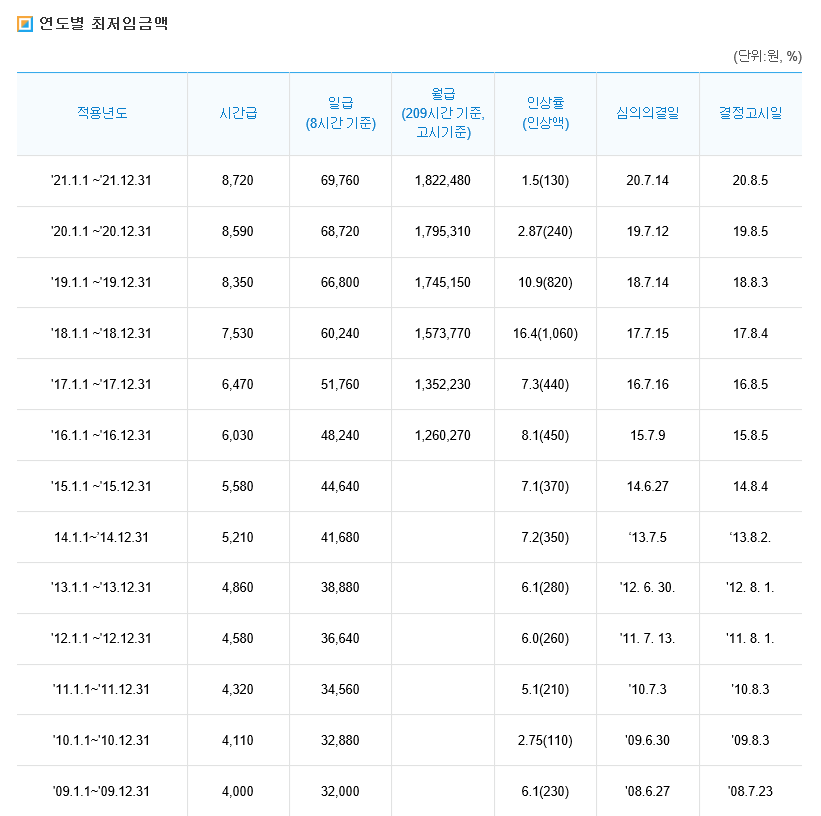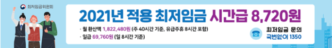 2021년 적용 최저임금음 시간당 8,720원이였죠.