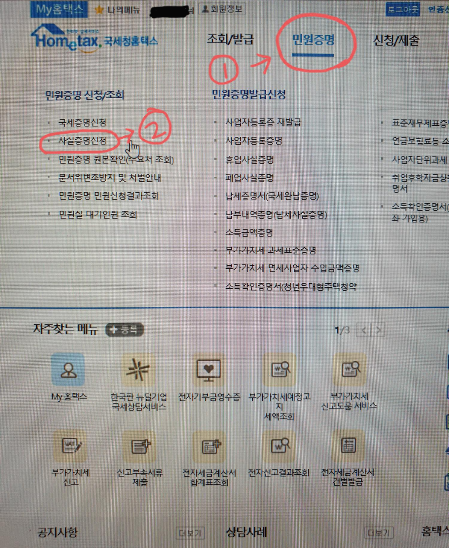 오늘은 <사업자 사실증명서> 발급방법에